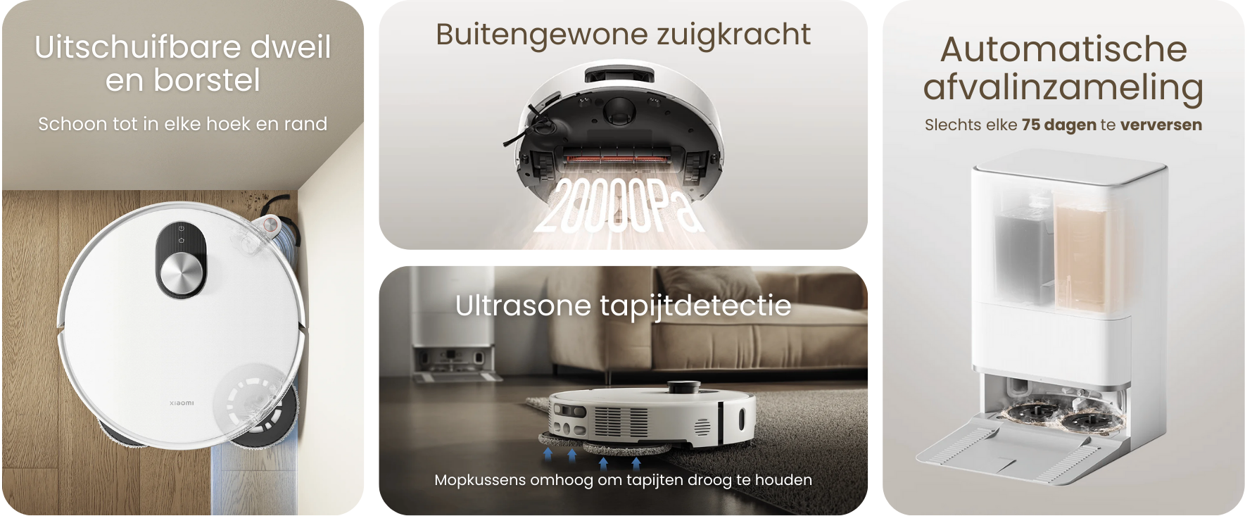 Wanneer je net die extra slimheid wilt en houdt van de nieuwste tech in huis, ga dan voor de Xiaomi Vacuum 5 Pro. Hiermee heb je én diezelfde functies als de Xiaomi Vacuum 5 én een slimme Triple AI-camera, die de werking van de Xiaomi Vacuum 5 Pro optimaal maakt.
